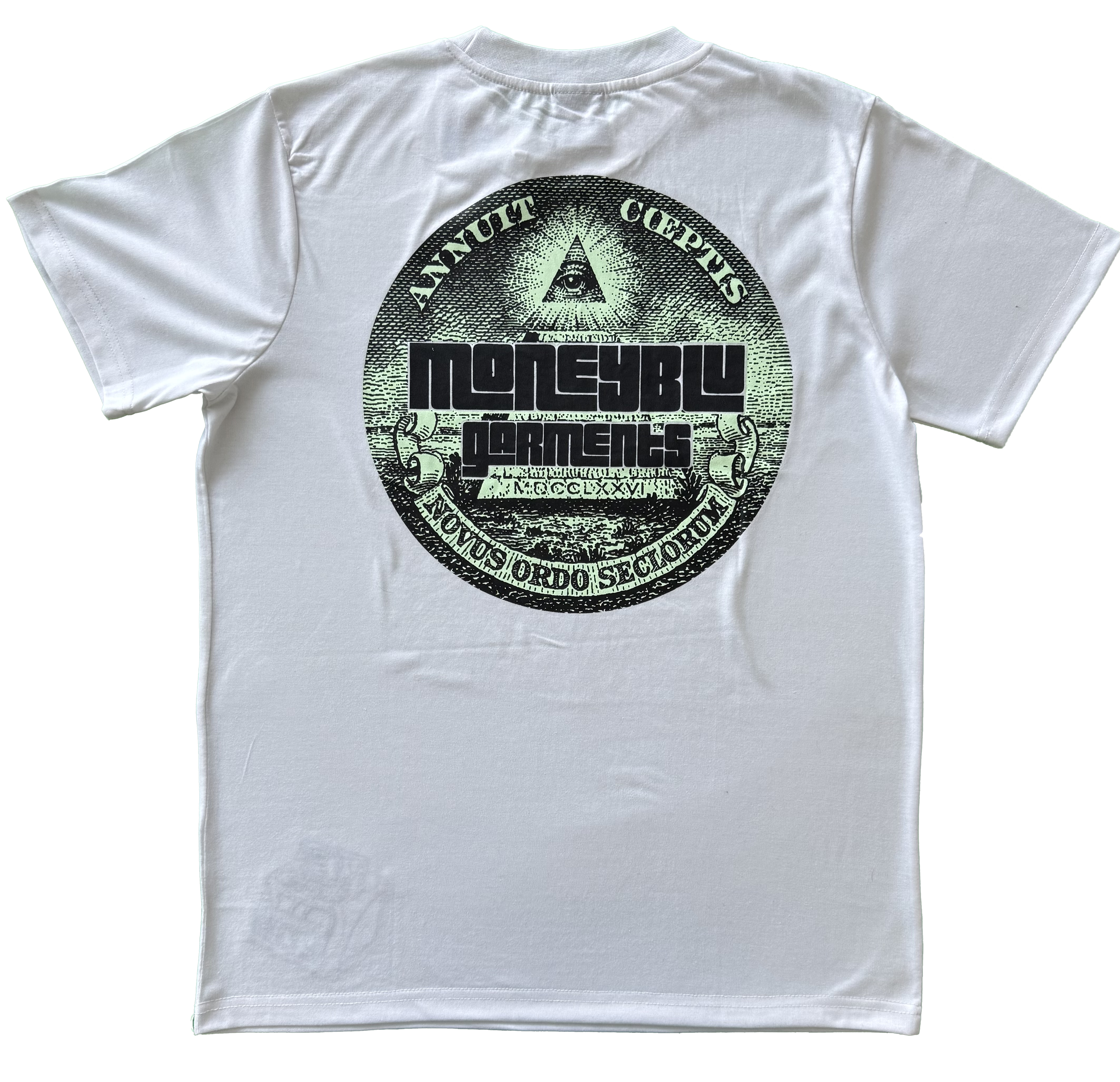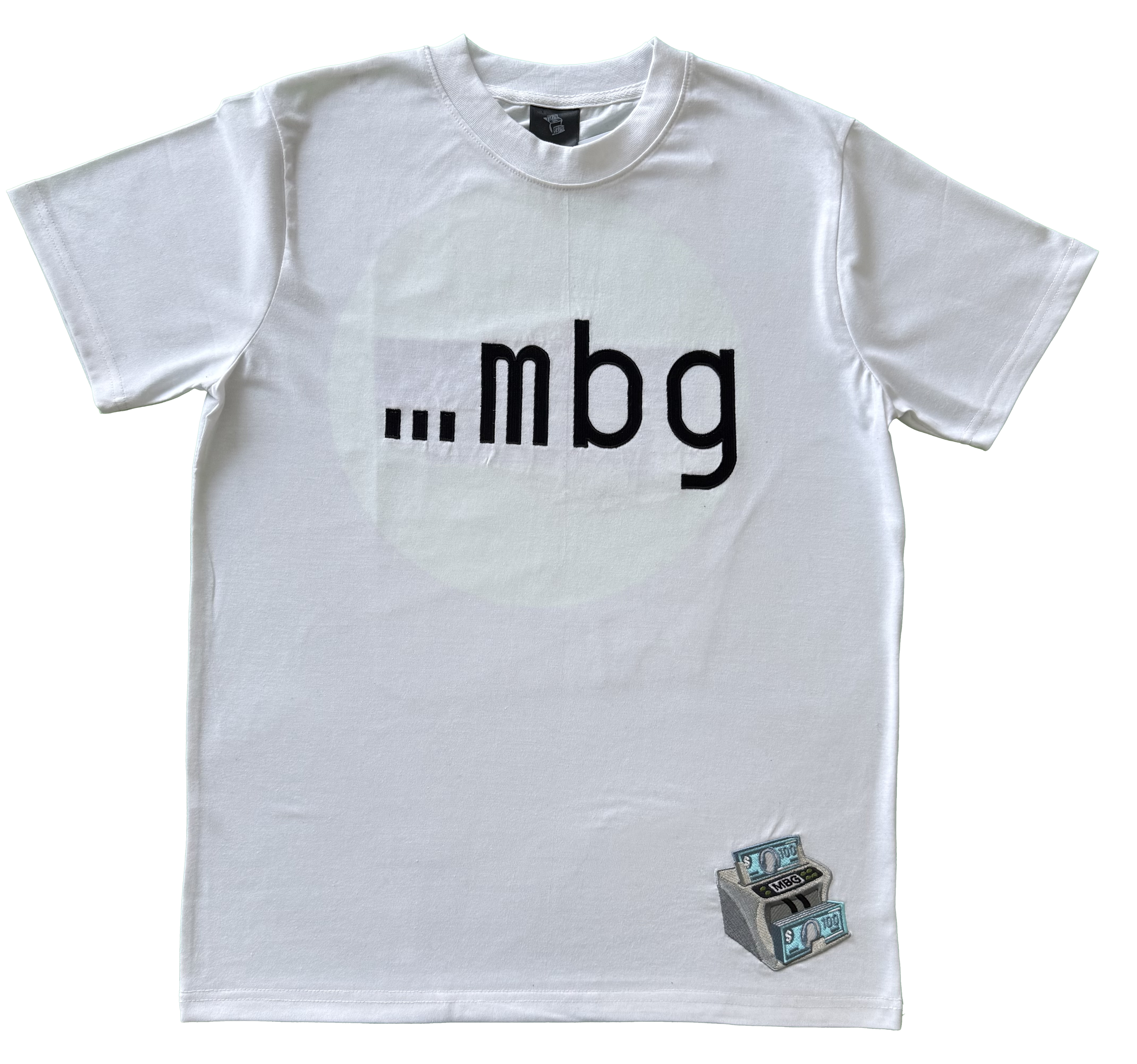 Embroidered brand initials"mbg" with print it design on back of shirt. The iconic MBG embroidered logo on front left bottom of shirt.
